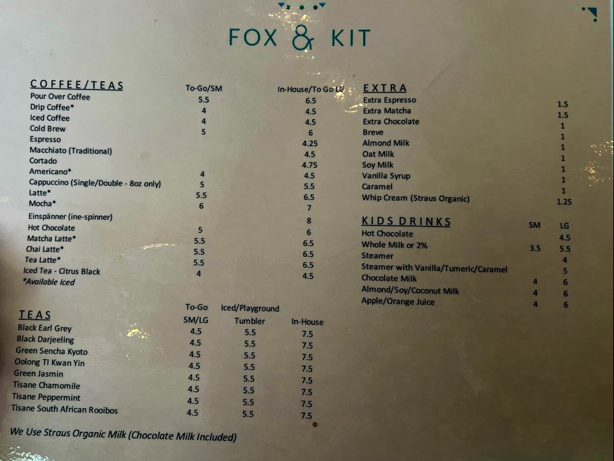 Fox & Kit prides itself on serving high-quality coffee, sourced from the renowned Temple Coffee Roasters in Sacramento. Whether you prefer a rich americano or a creamy cappuccino, each drink is crafted with care and precision, ensuring a delightful sipping experience. And if you’re in the mood for a treat, don’t miss out on their delectable pastries – be sure to try the almond croissant, which many customers rave about, especially when warmed.