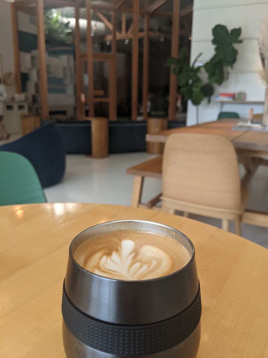 As soon as you step inside, you are greeted by a bright and inviting atmosphere, characterized by its modern Scandinavian-inspired decor. Large windows allow natural light to pour in, creating a calming environment where you can unwind while savoring your beverage. Cozy up in one of their two hammock chairs or enjoy a seat while keeping an eye on your children as they explore the clean and thoughtfully designed play area. It's a space perfect for toddlers and older kids alike, providing them with endless opportunities for play and creativity.